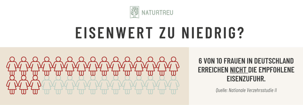 Laut der Nationalen Verzehrsstudie II erreichen allerdings 58 % der Frauen und 14 % der Männer die empfohlene tägliche Menge an Eisen nicht¹¹.