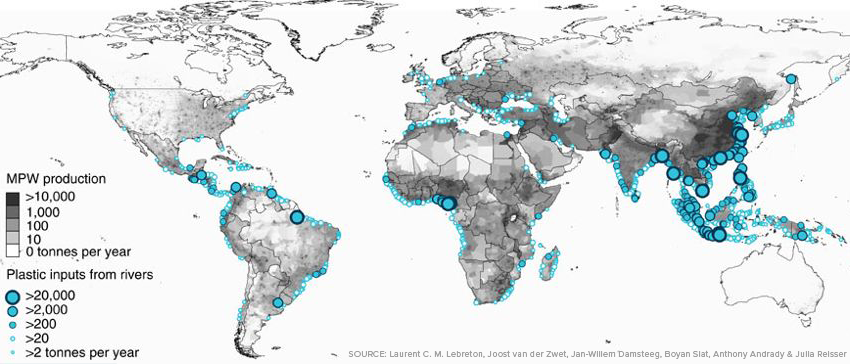 Die Abbildung von Visual Capitalist⁵ verdeutlicht, wo der größte Anteil des Plastikeintrags in die Ozeane erfolgt.