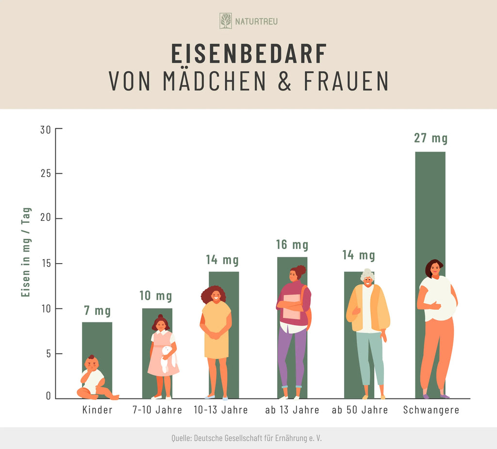 Durch den monatlichen Blutverlust geht auch ein Teil des wichtigen Mineralstoffs verloren²². Dabei wird dieser dringend für andere Aufgaben benötigt.