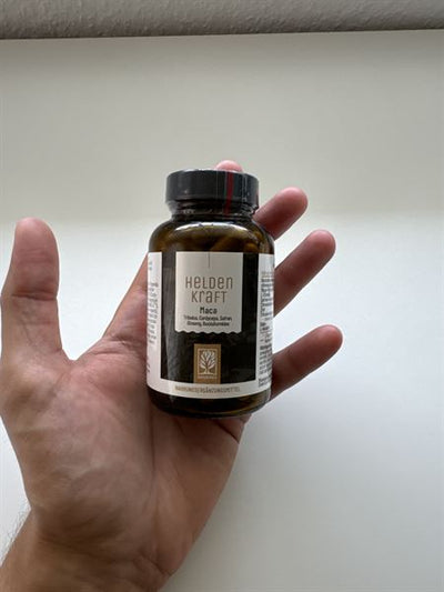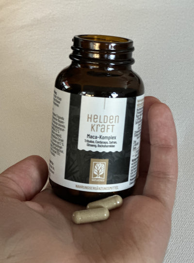Herausragend im Vergleich zu anderen Produkten ist auch die Dosierung des Inhaltsstoffs Maca: Das Maca in HELDENKRAFT ist ein 20:1-Extrakt – das bedeutet, dass die enthaltene Menge (150 mg/Tagesportion) der 20-fachen Maca-Knollenpulvermasse, also 3.000 mg, entspricht.