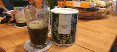Und: PFLANZENRITUAL schmeckt auch noch gut! Es kann daher einfach in Wasser (200 ml pro Portion) eingerührt werden. Viele handelsübliche Greens-Pulver sind geschmacklich derart gewöhnungsbedürftig, dass das jeweilige Mixgetränk mit Saft, Milch oder Pflanzendrink angerührt werden muss.