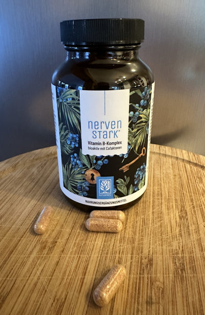 Unser NERVENSTARK¹ Vitamin B Komplex zeichnet sich dadurch aus, dass fast alle enthaltenen Vitamine in einer hochgradig verfügbaren Form vorliegen – also unseren hochdosierten Vitamin B Komplex bioaktiv machen.
