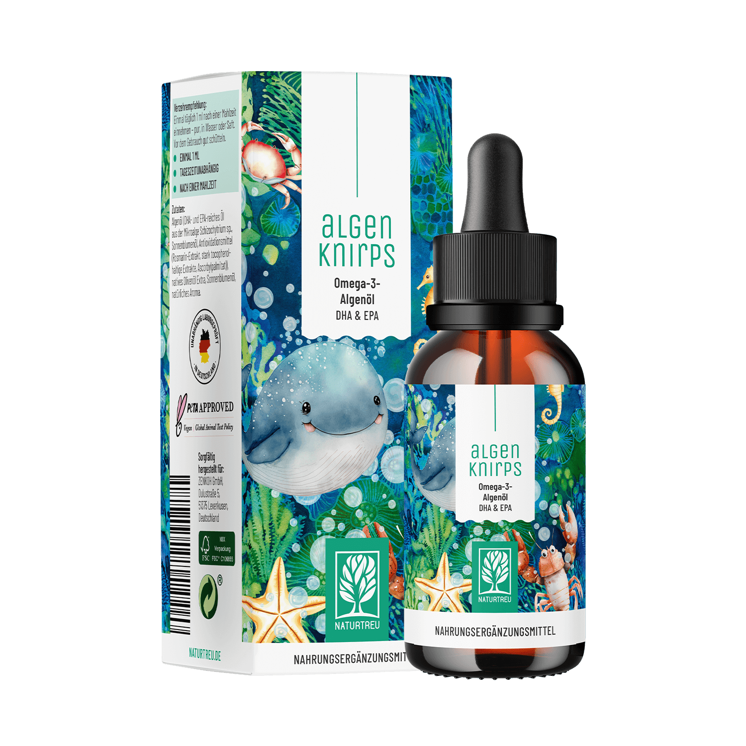 ALGENKNIRPS: Omega 3 Öl in praktischer Tropfenform