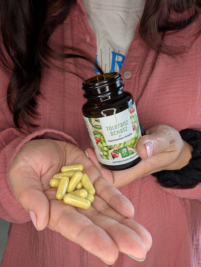 TOLERANZSCHATZ enthält neben Diaminoxidase auch die Cofaktoren Vitamin C, Katalase und Quercetin. Zudem ist die Diaminoxidase in unserem Produkt pflanzlichen Ursprungs und wird nicht, wie üblich, aus der Schweineniere gewonnen.