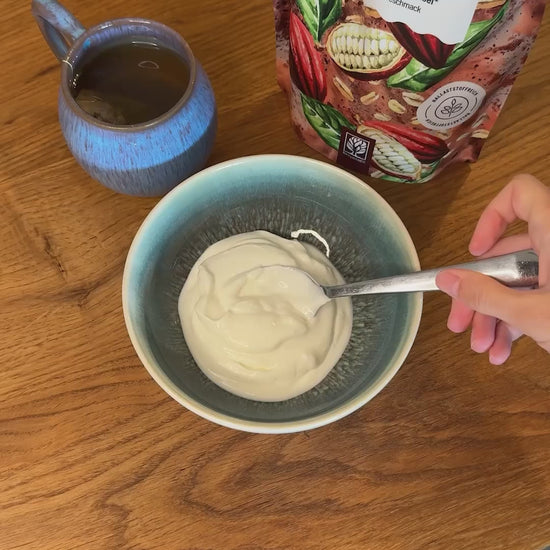 Mit Proteinzeit kannst du deine Proteinzufuhr im Alltag schnell und unkompliziert unterstützen. Jede Portion liefert dir ganze 18 Gramm Protein aus fünf pflanzlichen Quellen für ein ausgewogenes Aminosäureprofil. Dazu kommen Ballaststoffe aus Hafer, Flohsamen und Leinsamen für eine angenehme Sättigung ohne Schweregefühl.